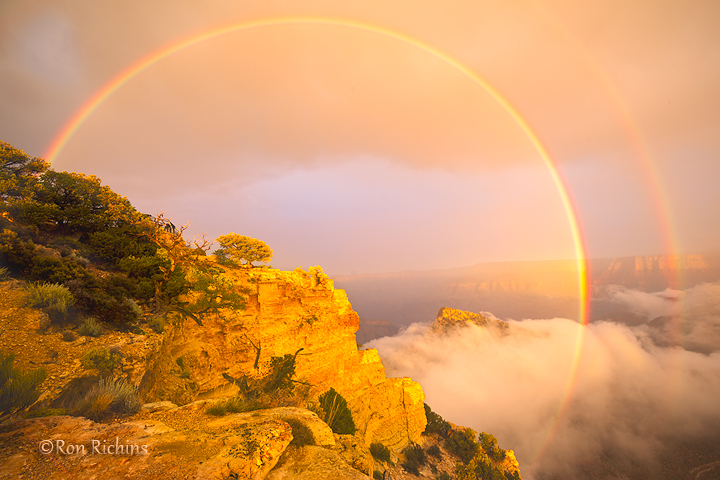 A monsoon storm passes through Grand Canyon National Park. If the cliff wasn't there, and if it was possible to hover in the air, would the rainbow make a complete circle?