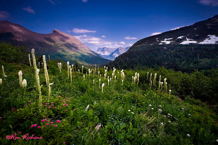 These stalks of bear grass stand aloft, overlooking a vast mountain scene.