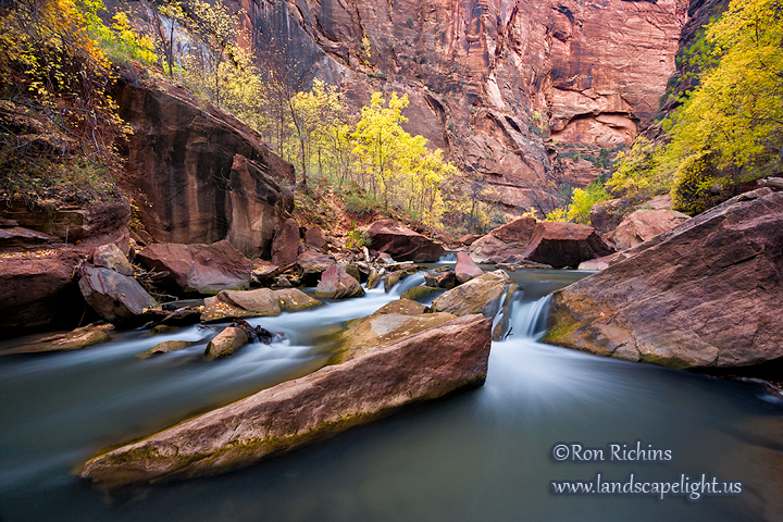 Beyond this scene lies the entrance to the Virgin River Narrows in Zion National Park.