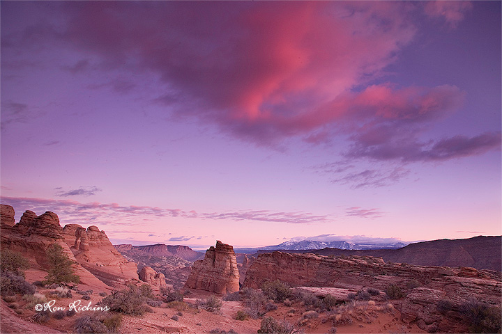 The popular Delicate Arch blends into the landscape of Arches National Park.